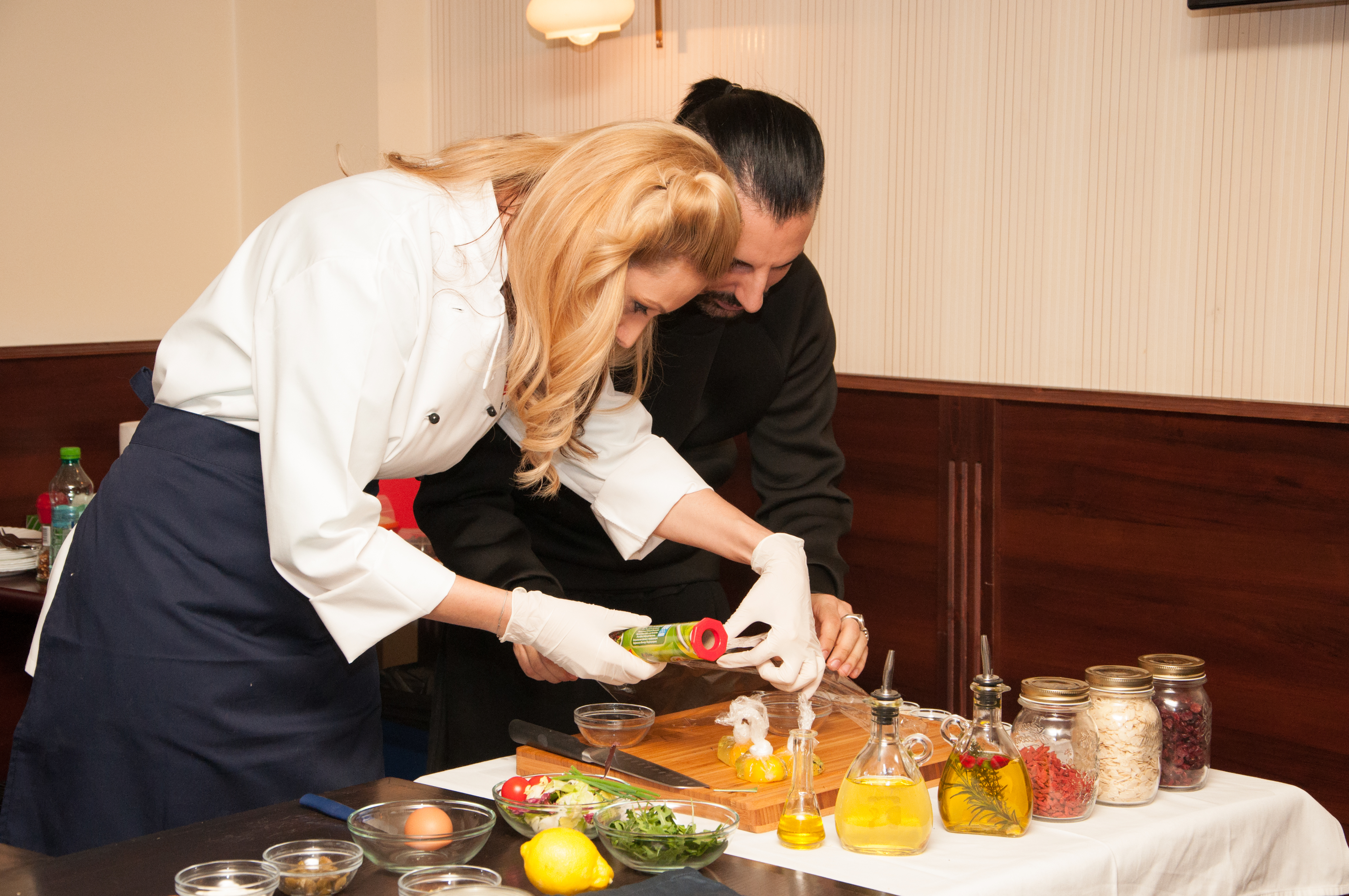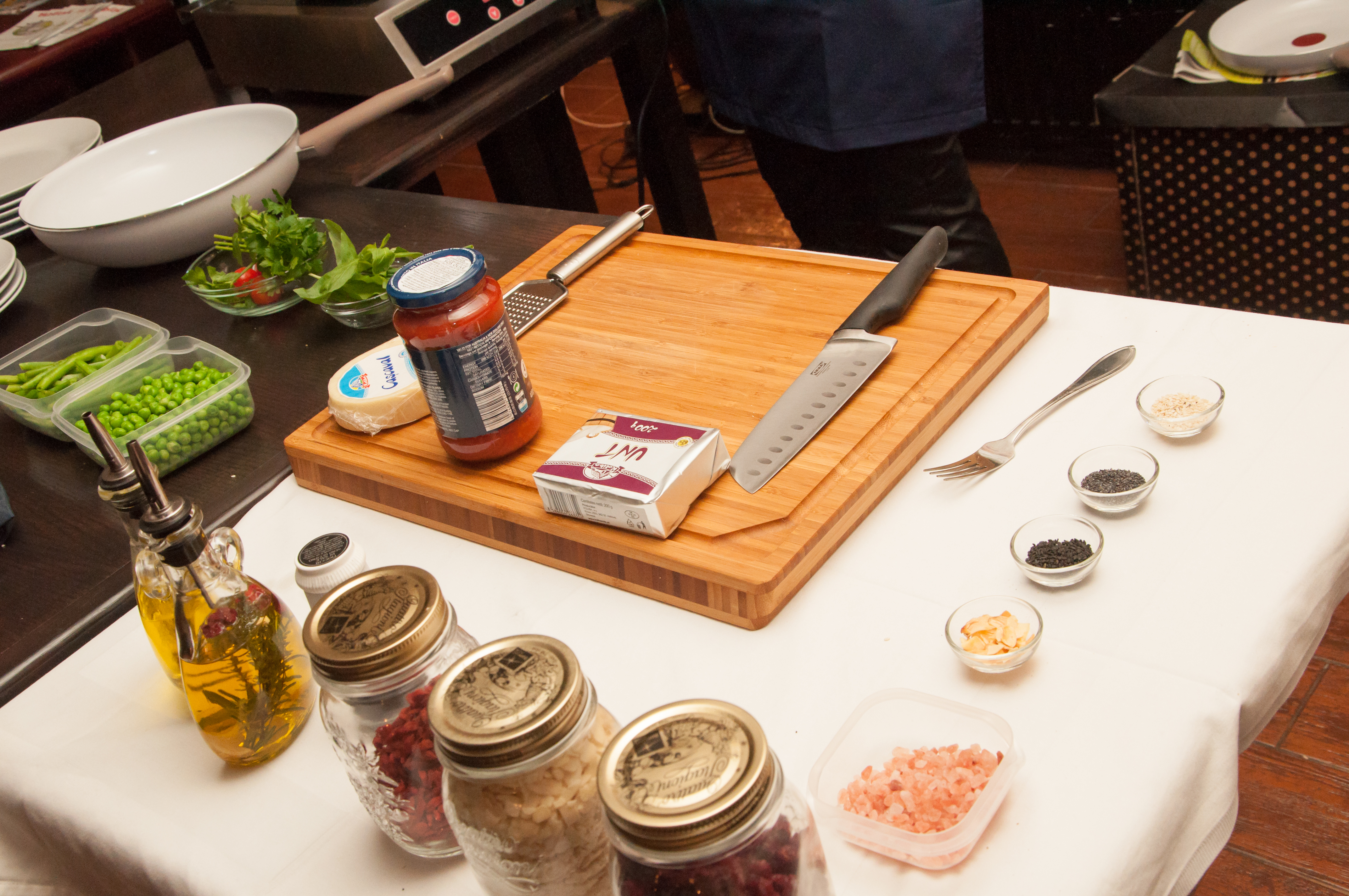 Alături de Specialistul în Nutriție Alexandra Alexandru, am explicat și gătit activ cu cei prezenți timp de aproape trei ore, patru rețete: 01. Ouă poșate cu salată și sos de muștar, 02. Paste integrale cu sos Barilla Olive și legume, 03. Paste integrale cu sos Barilla Pesto și 04. Pește cu legume la wok Tefal. Preparatele au fost gătite cu ingrediente și ustensile puse la dispoziție de Barilla, Koliba și Tefal iar voia bună din pauze a fost asigurată de Casa de Vinuri Huși. Rețetele pot să fie găsite aici pe blog.